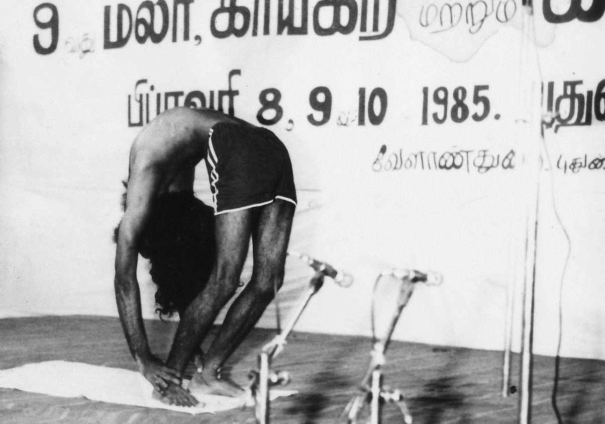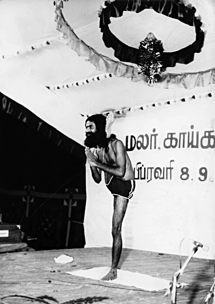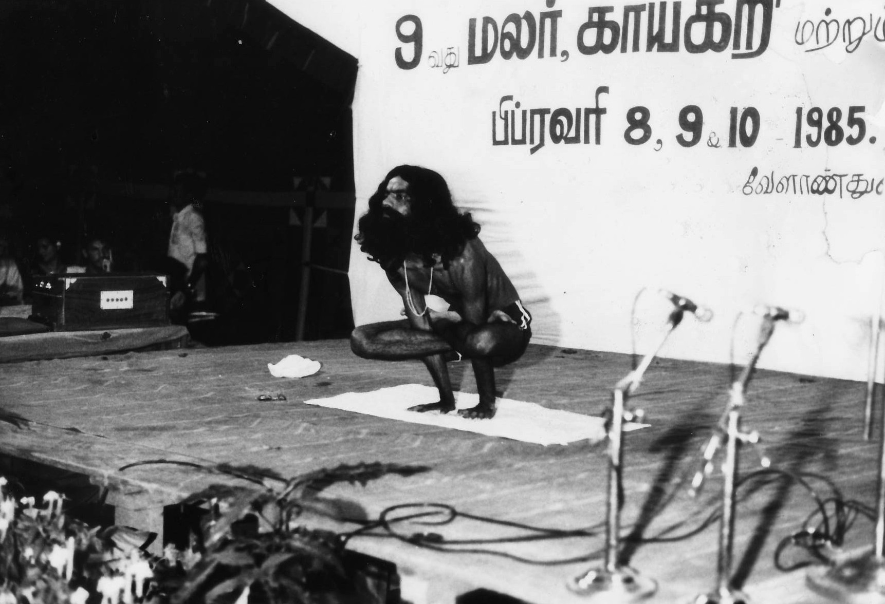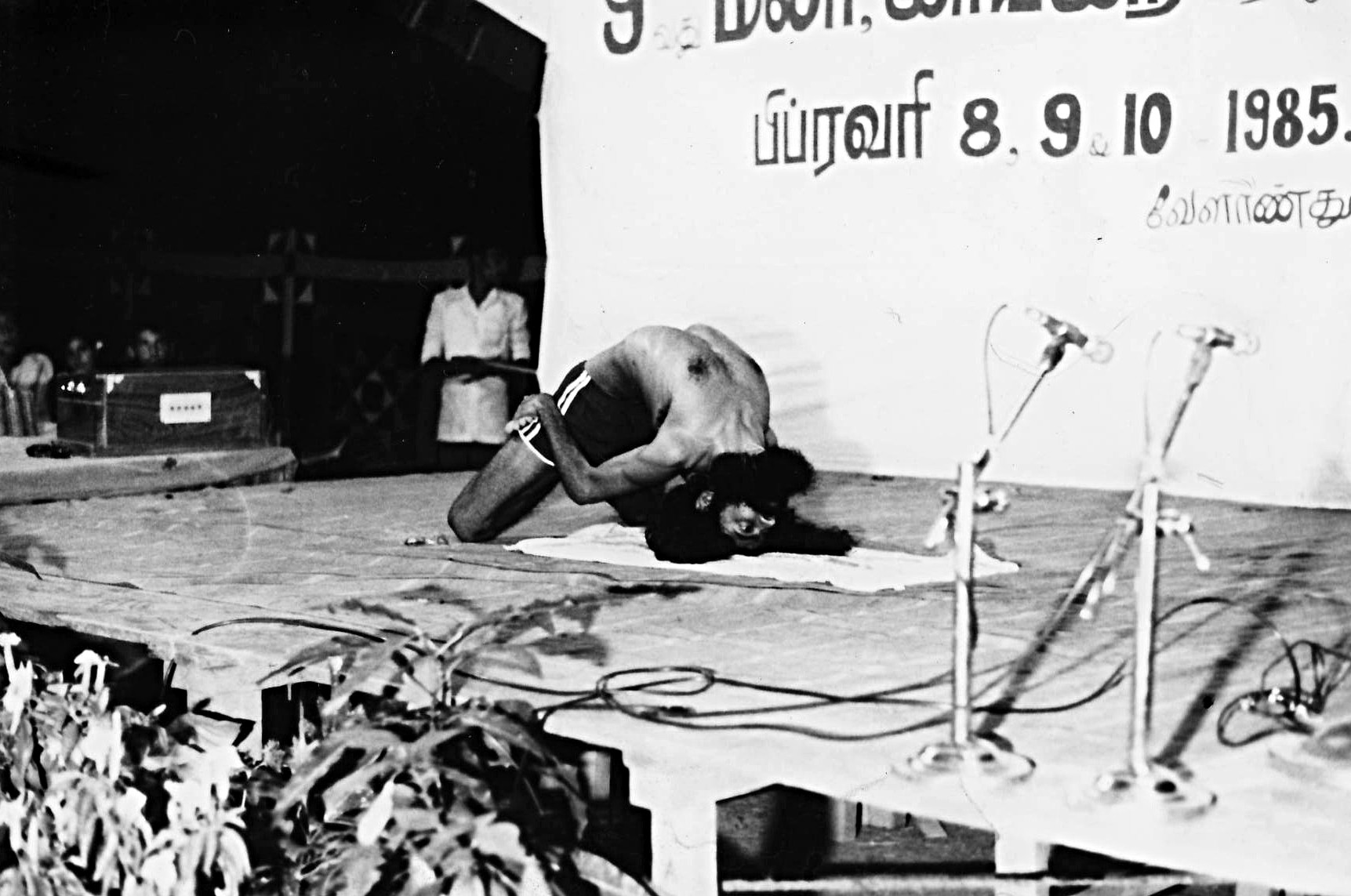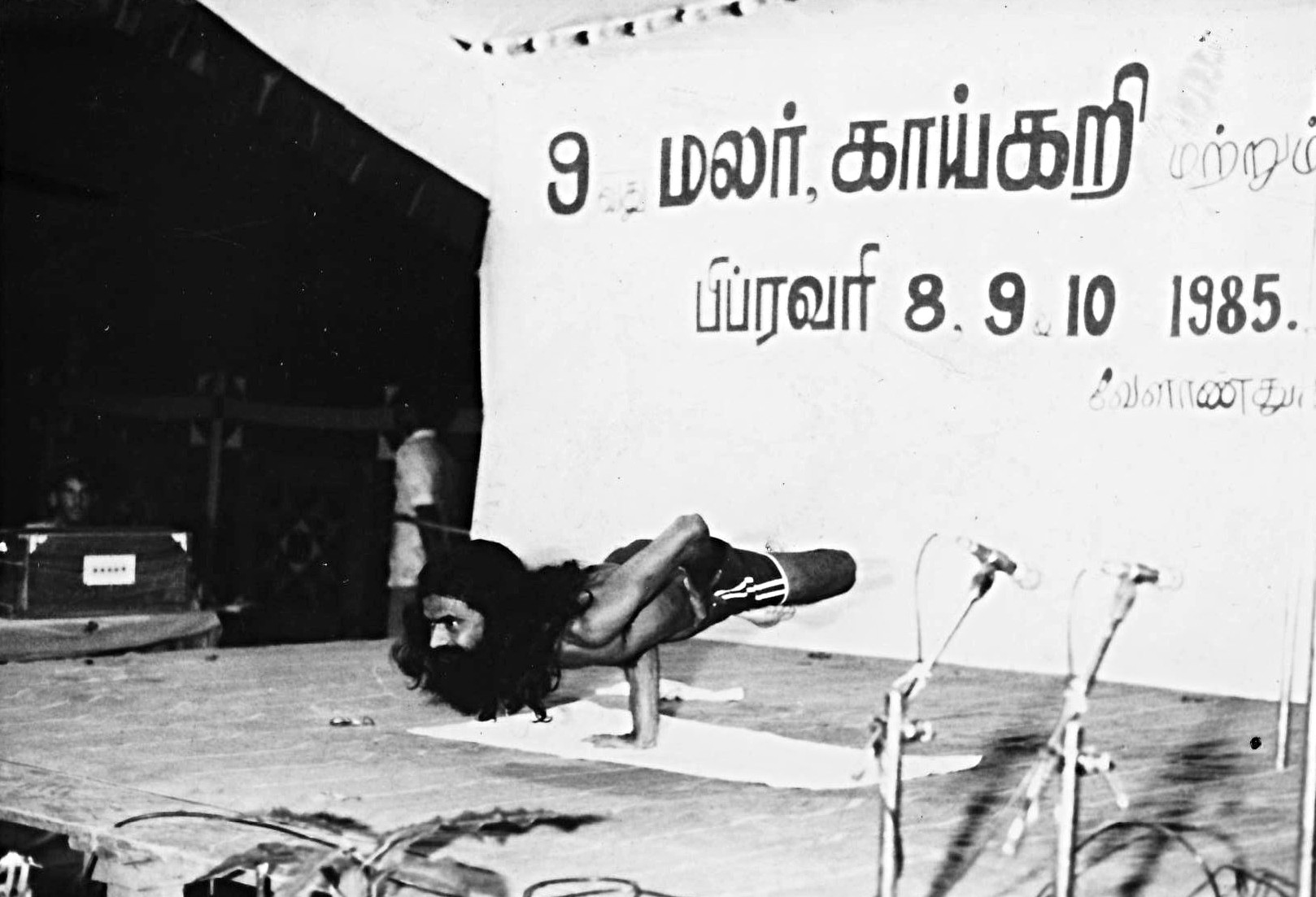Sushil Bhattacharya lehrte in seinen jungen Jahren im Anandan Ashram im südindischen Pondicherry, wo er auch einen Teil seiner Yogameisterausbildung erhielt. Dort fand 1985 ein nationaler Yoga-Wettbewerb statt. Diese historischen Bilder zeigen Ausschnitte aus dem Programm von damals.